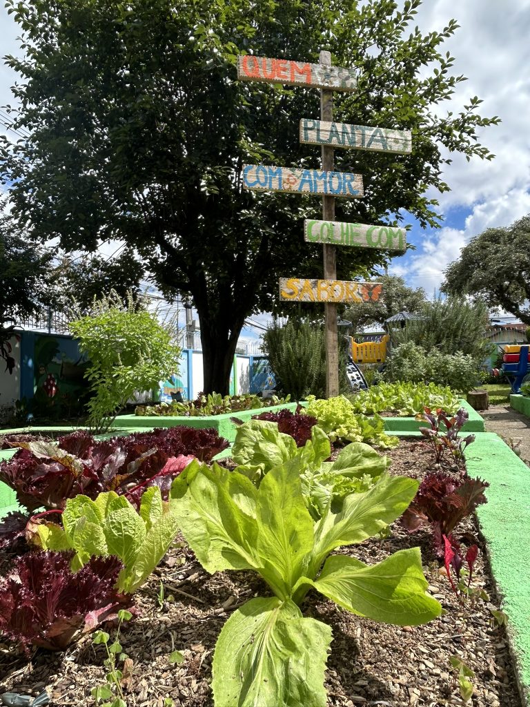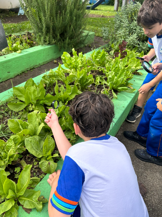 Você sabia que temos atividades de plantação e cultivo de uma horta no espaço escolar? O contato direto com o processo de crescimento do alimento ensina a criança sobre a importância do cultivo e da valorização da natureza e da vida. Entender que as plantas têm processos e que para cada etapa é necessário cuidado e atenção é essencial para o desenvolvimento de valores. Entender as adversidades do clima junto às características biológicas de cada planta, ensina que cada ser vivo tem suas individualidades e precisa ser preservado. Ao colher e utilizar os alimentos, que eles mesmos plantaram, nas atividades de culinária, faz-se um encerramento do processo de aprendizagem em que desenvolvem a consciência e o cuidado consigo e com o meio ambiente e o cuidado com a nossa casa comum.